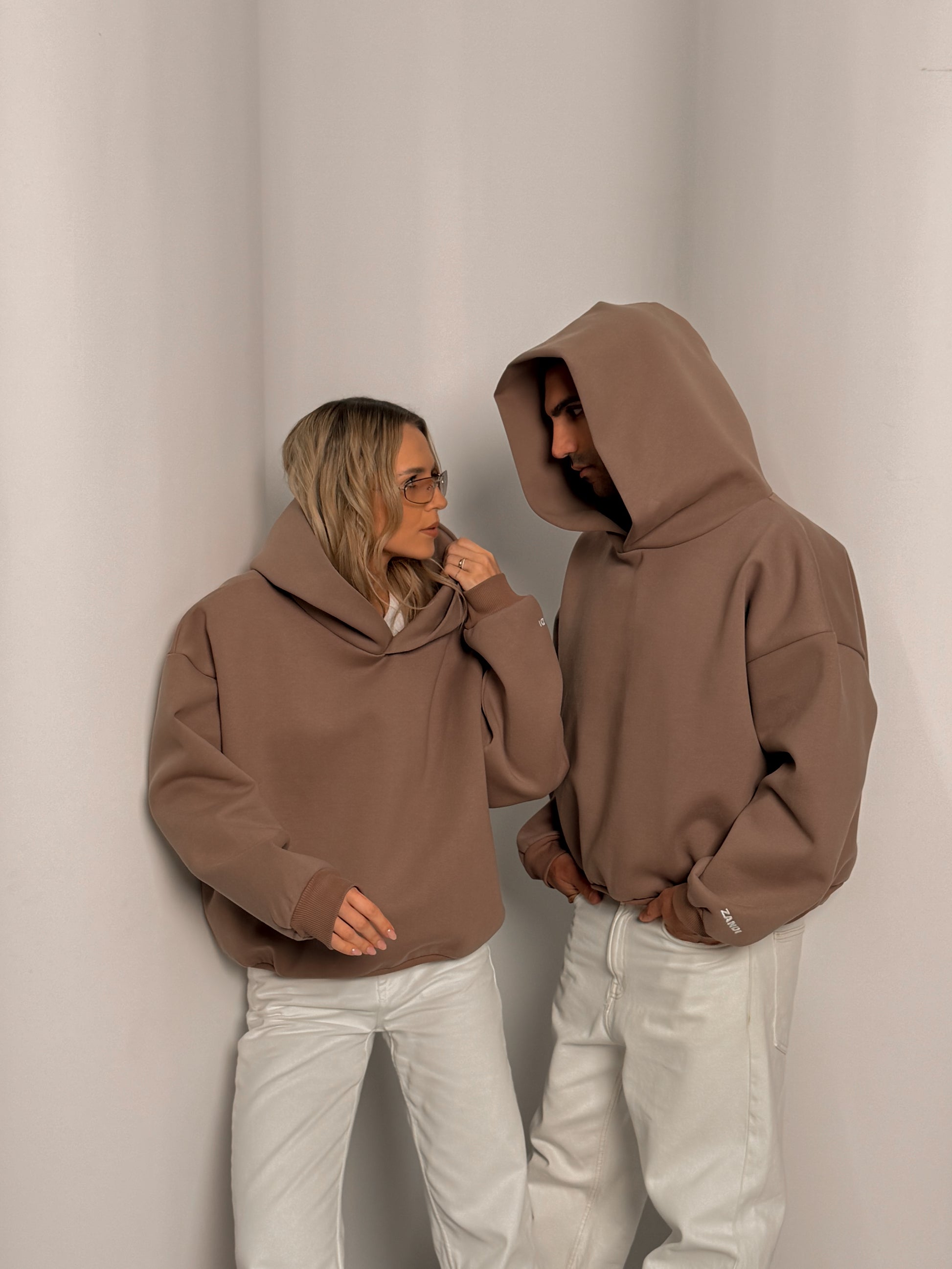 Laminated Hoodie in Cappuccino